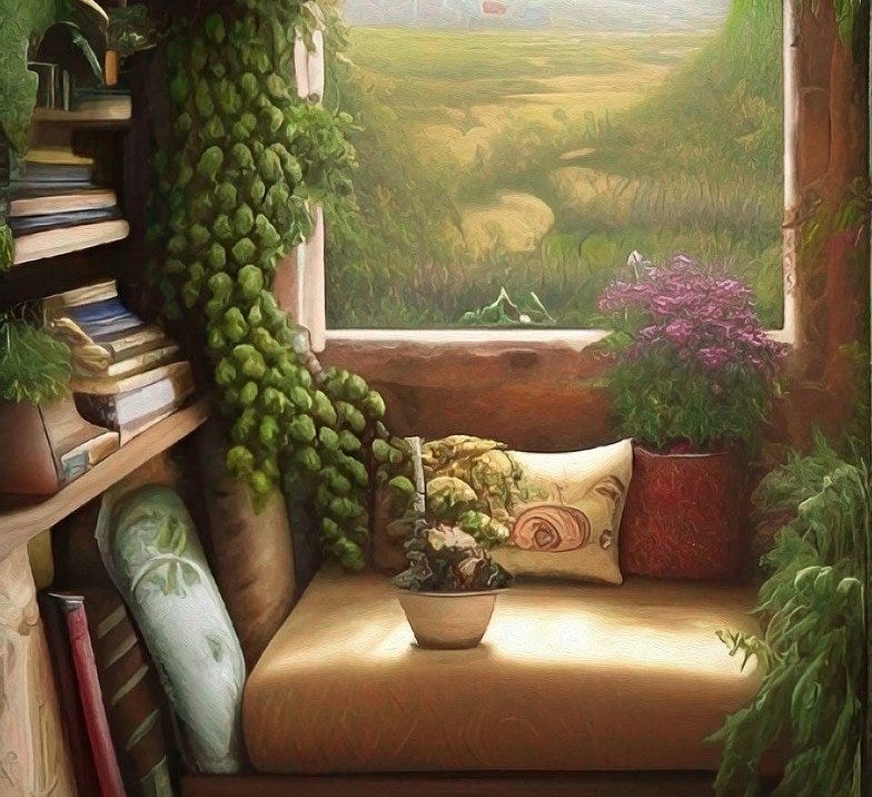 E bine să revin la acea parte din mine care iubește poveștile și care visa (visează încă) la o cameră-bibliotecă unde pereții sunt plini de cărți de jos până sus și unde poate citi pe divanul de lângă fereastră....